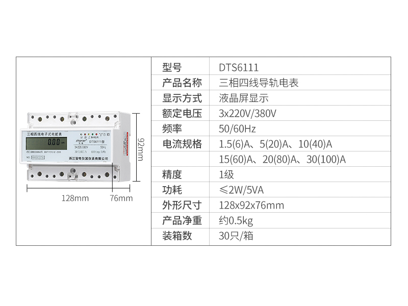 六、DTS6111-7三相導軌式電能表的選型如下: