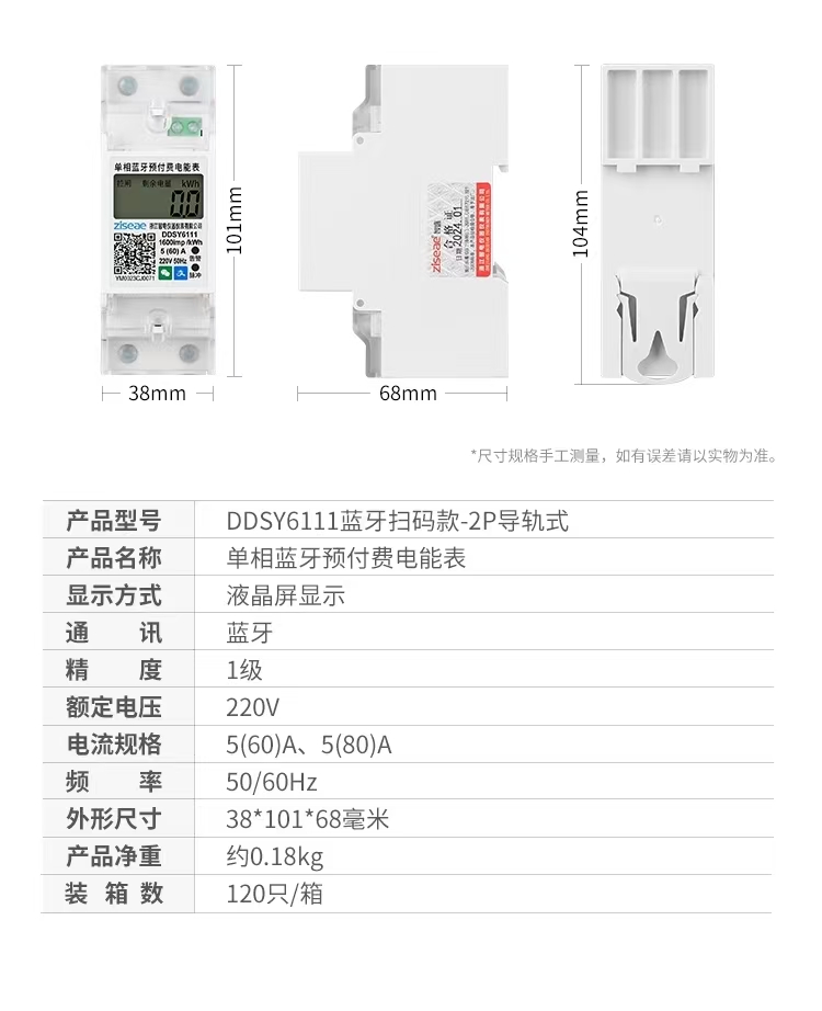 單相導(dǎo)軌藍牙掃碼充值電表